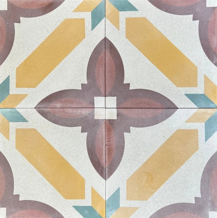 Arabian Sunset tile. This stunning design has always been a favourite in our Antique Tile range, so much so we just had to have it reproduced. The charm and character of this tile is enhanced by its unison of beautiful colours giving the tile a fresh, modern and vibrant feel while using the old effect giving the tile its antique charm. The Arabian Sunset will set the scene in any space it is installed, for interiors and exteriors.