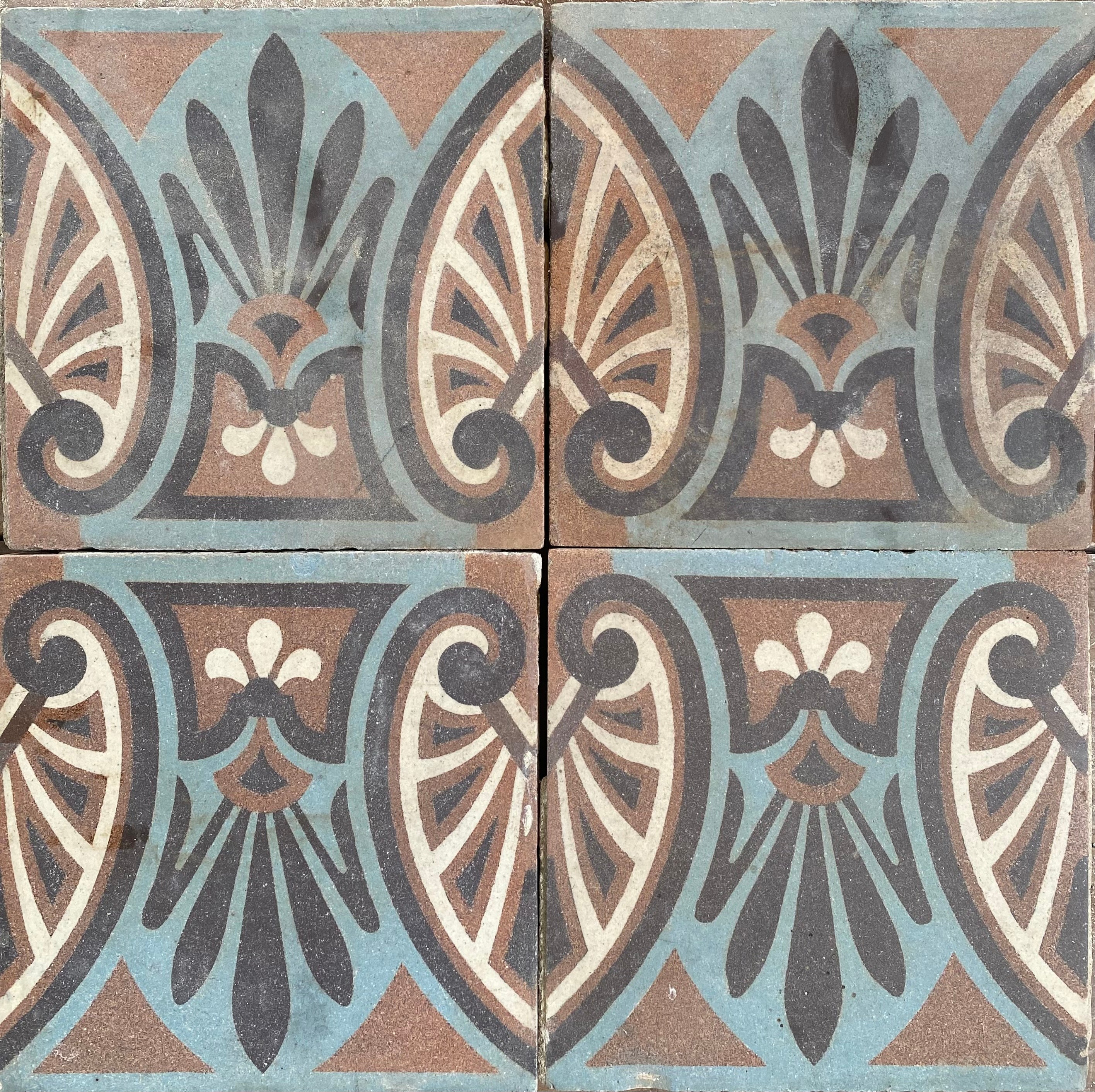 Antique encaustic tiles, hand made and salvaged from all over Europe and beyond. These tiles are hundreds of years old and will last for hundreds more, due to the technique in which they are made. Encaustic cement tiles are hand poured, resulting in the pigments being embedded 2-3 mm deep within the surface of the tile. This technique sets them apart from other printed tiles, making them a truly unique, lifetime investment.