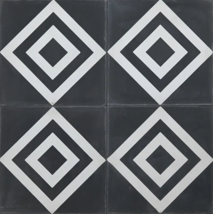 Black and White Elegance Tile. A midnight black tile with two, strong white diamonds that centre the tile. Black and White Elegance for any interior.