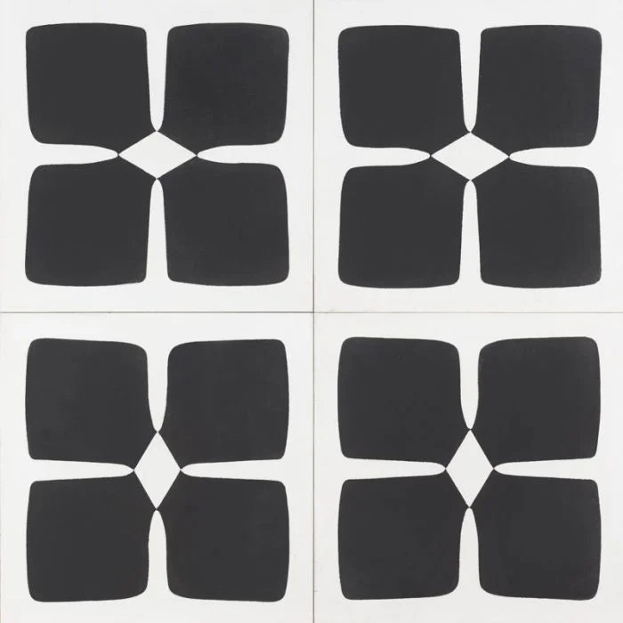 Black Solo Fleur Tile. A white tile with a large black floral shape that makes a statement in the centre. Black Solo Fleur for any interior.