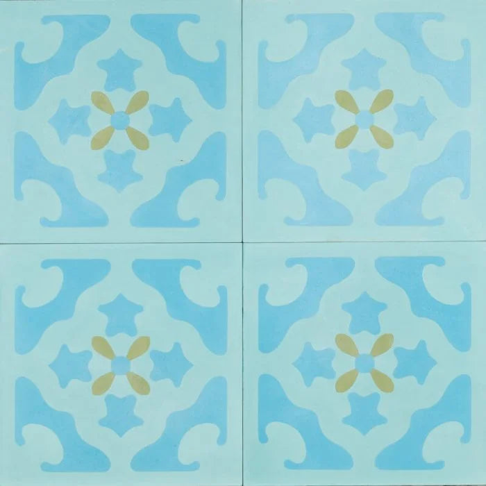 Blue Santorini Tile. The colours of the Mediterranean bring the soft pattern in this tile to life. Sky blue and turquoise, Blue Santorini for any interior.