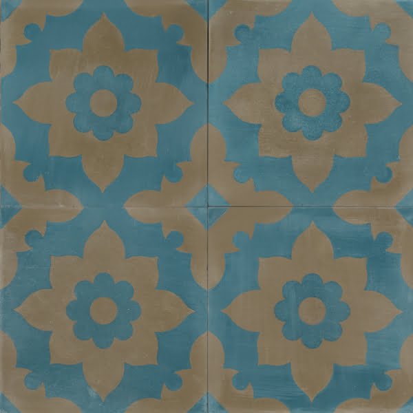 Blue Sol Old Effect Tile. Where deep olive meets smokey teal, a strong flavour beautifully connecting the old, with its antique effect, and the new. Blue Sol carries its vibrant power featuring a strong flower shape that centres the tile and cascades out, creating a stunning� outcome wherever it is laid. Blue Sol Old Effect for any interior/ exterior…