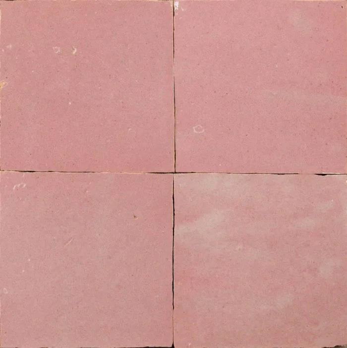 Blushing Pink Glazed Tile. A sweet, smokey pink coloured tile with hues of rose. Blushing Pink to bring life to any interior. Hand made, rolled and colored in Morocco.