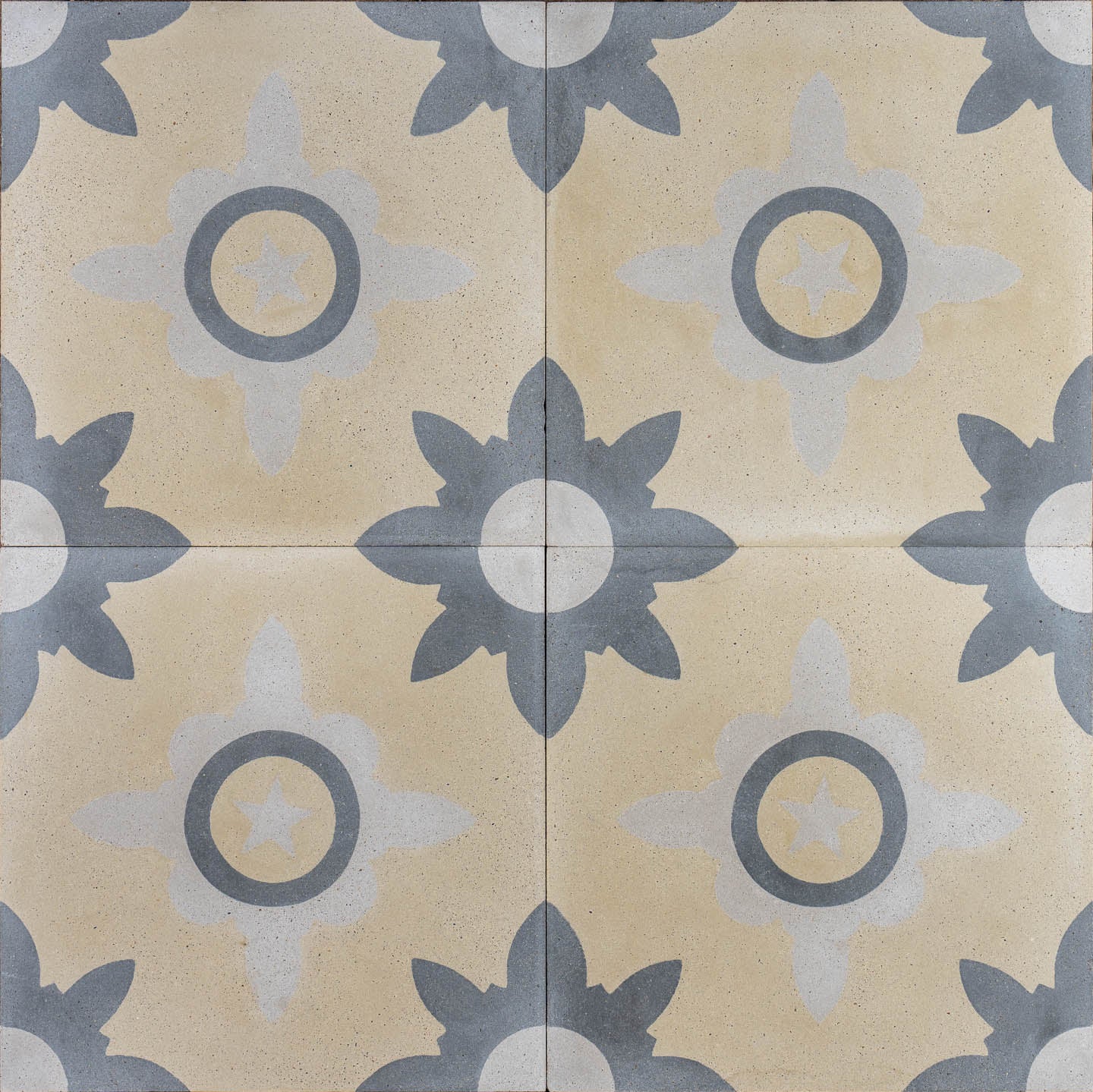 Bodhi Tile. A gorgeous new design taken from one of our favourite antique tiles. The cool tones of cream and grey bring a whisp of elegance to any installation it is used for. With its beautiful flower pattern, the design also has a gentle touch of masculinity.