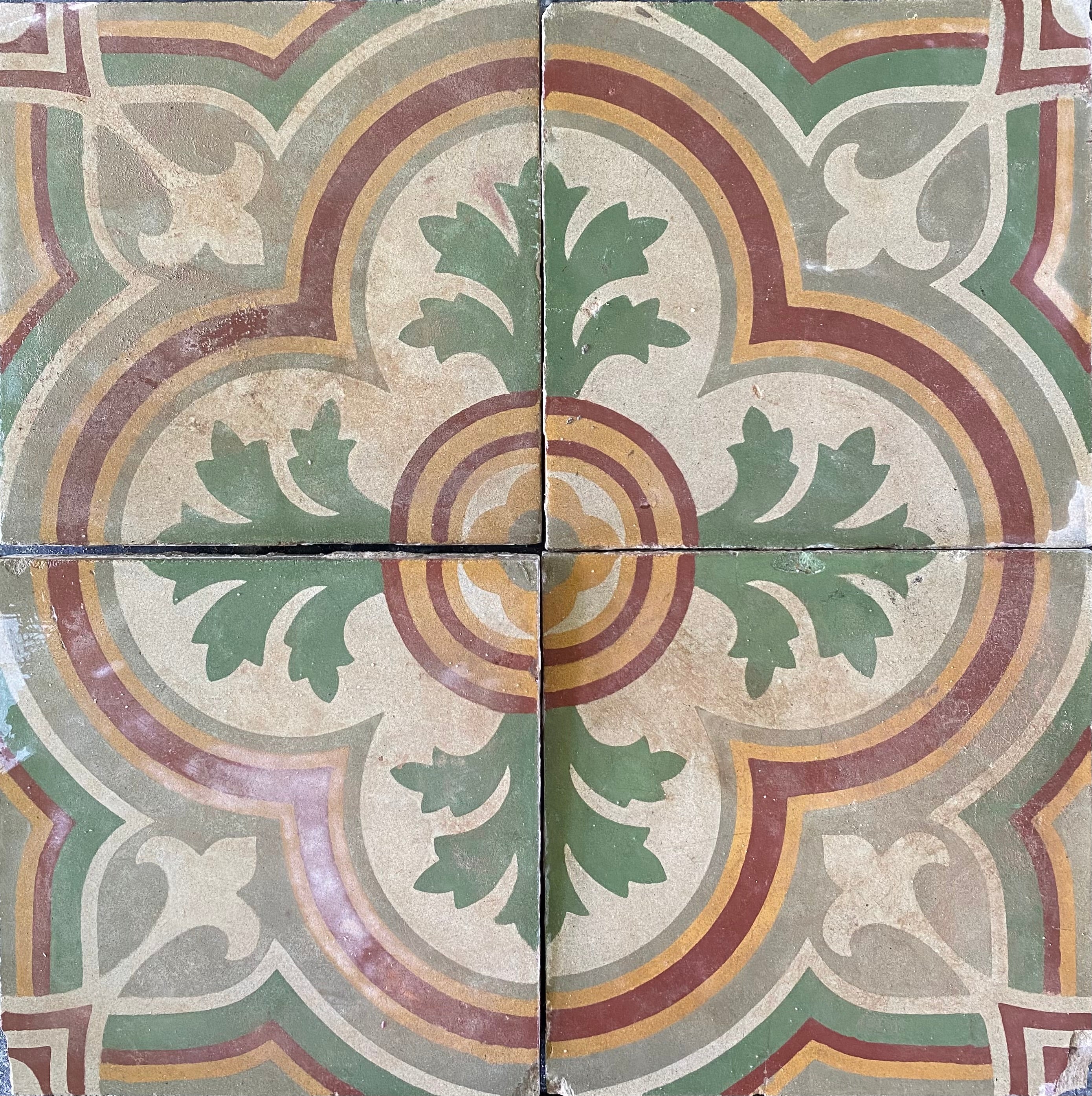 Antique encaustic tiles, hand made and salvaged from all over Europe and beyond. These tiles are hundreds of years old and will last for hundreds more, due to the technique in which they are made. Encaustic cement tiles are hand poured, resulting in the pigments being embedded 2-3 mm deep within the surface of the tile. This technique sets them apart from other printed tiles, making them a truly unique, lifetime investment.