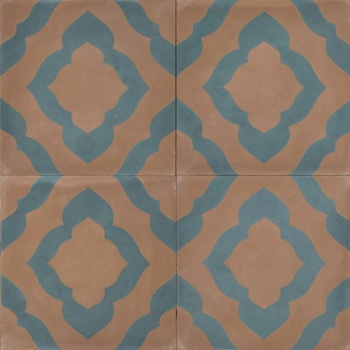 Desert Flora Tile. Warm, earthy brown offset with a deep smokey blue shaped in stylistic diamonds that cascade out. Desert Flora to honour any interior.