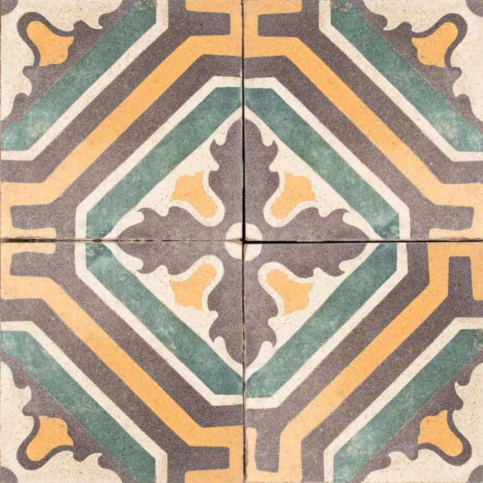 Egyptian Night Antique Tile. Colours of forest green, gold, deep brown and white compliment the graphic pattern. Egyptian Night for any interior.