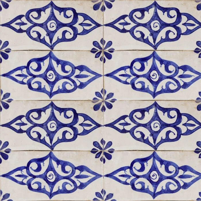 Essaouira Lotus. Handmade moroccan tile coloured by traditional white and vibrant royal blue. The lotus inspired shapes will give any space a touch of paradise. Essaouira Lotus for any interior and splash back features.