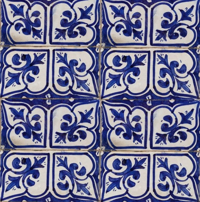 Essaouira Positano. Handmade moroccan tile coloured by traditional white and vibrant royal blue. The stunning Essaouira Positano captures the calming notion of the floral pattern with the cooling vibrancy of the handpainted blue and white pattern. Essaouira Positano for any interior, splash back features and exterior installations..