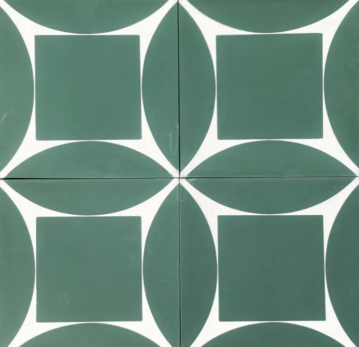Forest Green Cuzco Tile. For all lovers of green!! Look no further!! This tile is exceptional and will take any space to another level of awe where the beautiful forest green colour meets the stunning geometric lines incorporating petals of a stunning flower and large block formations surrounded by a star. Let the Forest Green Cuzco tile inspire any interior, indoors or outdoors.