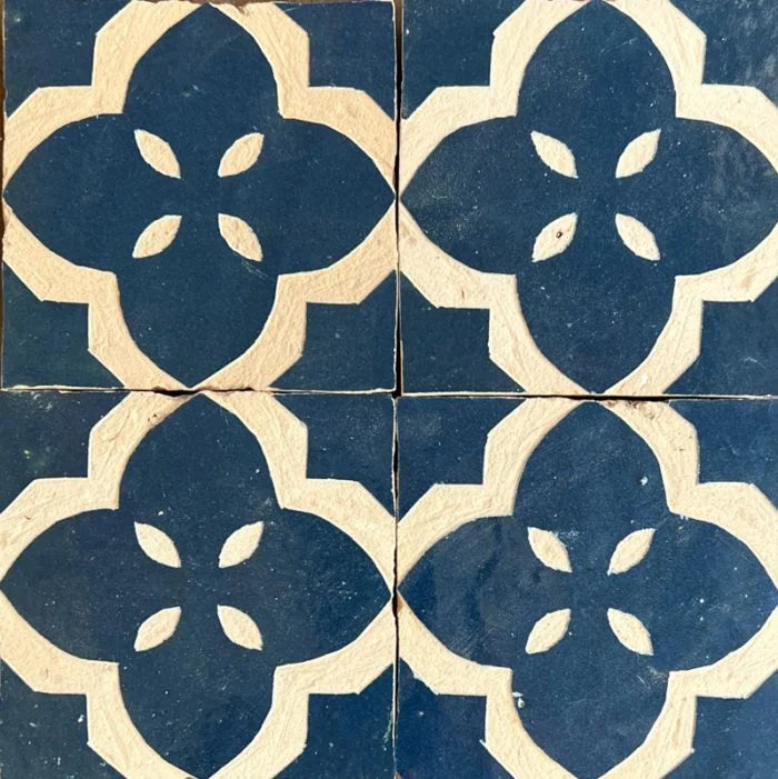 Glazed Navy Lace. This stunning tile is hand made and hand etched. The beautiful, almost perfect colour of navy glaze has been finely hand etched to create the stunning pattern that is Glazed Navy Lace. With it’s warm exposed terracotta these tiles are rich in every flavour of design and are the perfect feature tile for any installation. These timeless beauties will inspire and will deserve their awestruck admirers, Glazed Navy Lace for any interior.