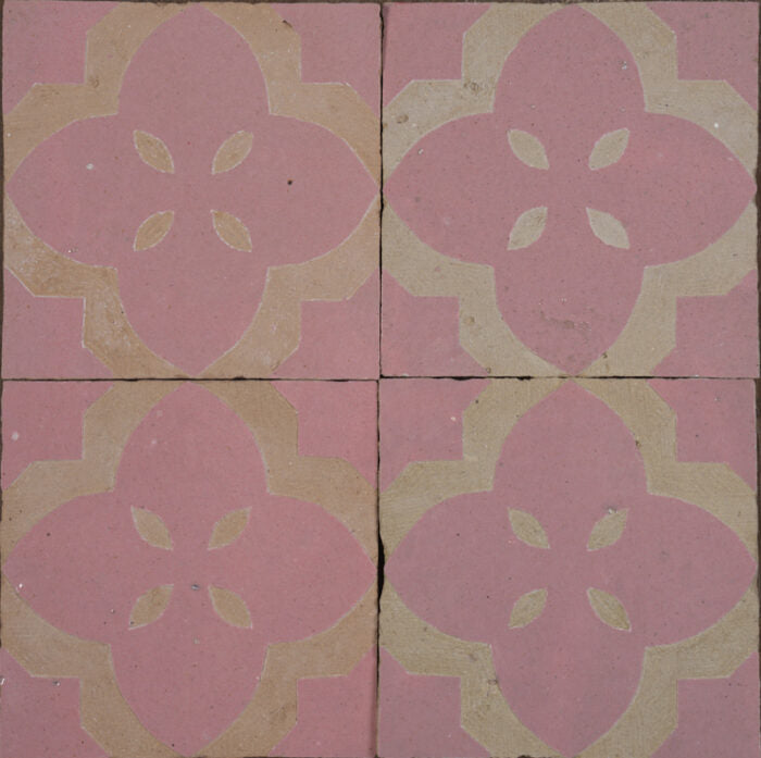 Glazed Pink Lace Tile. It doesn’t get more elegant than this! The etched out star and floral shapes of this tile create a beautiful lace effect. The beautiful pink will soften any space. Glazed Pink Lace for any interior.