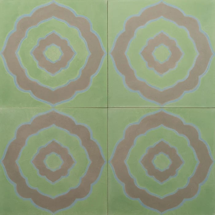 Green Moroccan Dreaming Tile. A deep enchanting jade green colour with a floral grey shape that cascades out. Green Moroccan Dreaming for any interior.