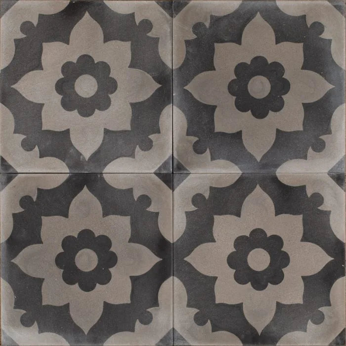 Grey and Black Sol Old Effect Tile. A gorgeous new design that is not only striking that will bring a whisp of elegance to any installation it is used for. With it�s beautiful flower pattern, and the added old effect, the Grey and Black Sol adds that touch of gentle masculinity. Grey and Black Sol Antique to bring life to any interior.