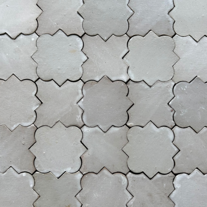Grey Blossom tile. In its handmade beauty, a unique look as two tiles are joined to form this stunning pattern. A feature tile that will leave an impact with the variety of cool tones. Let this tile take the breath away, striking, modern and unique, Grey Blossom tile for any interior or exterior feature installation.