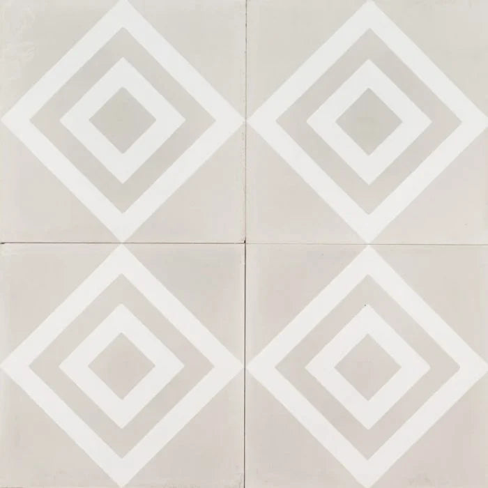 Grey Elegance Tile. A soft grey coloured tile with elegant white diamonds that centre them. Simple, classic and elegant. Grey Elegance for any interior.