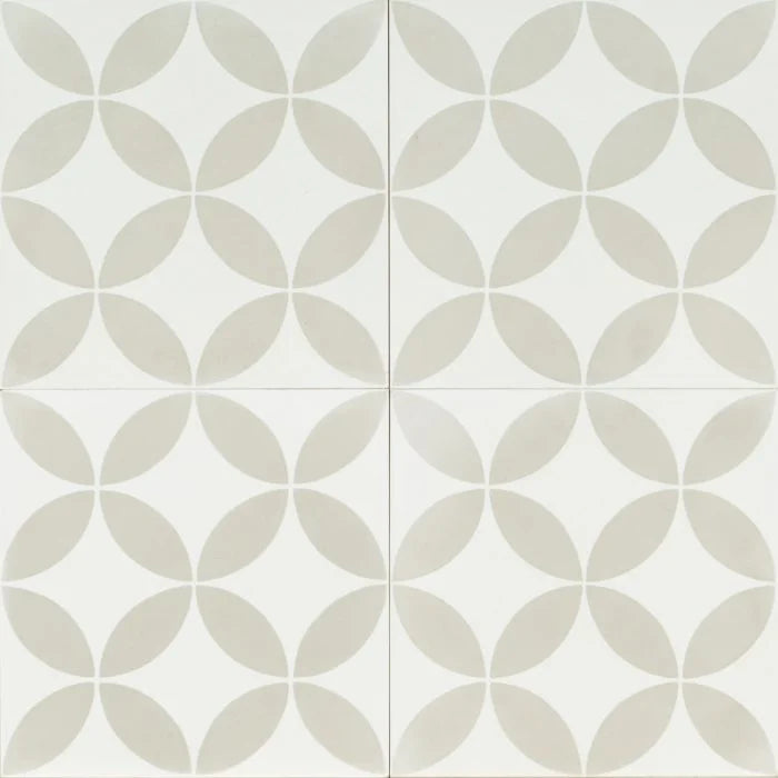 Light Grey and White Circle Tile. **Made to order** White tile with a light grey petal design that makes a beautiful repetition. Light Grey and White Circle for any interior.