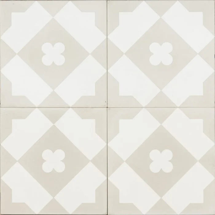 Light Grey and White Star Tile. Soft grey with a strong white pattern that makes up star shapes. Light Grey and White Star for any interior.