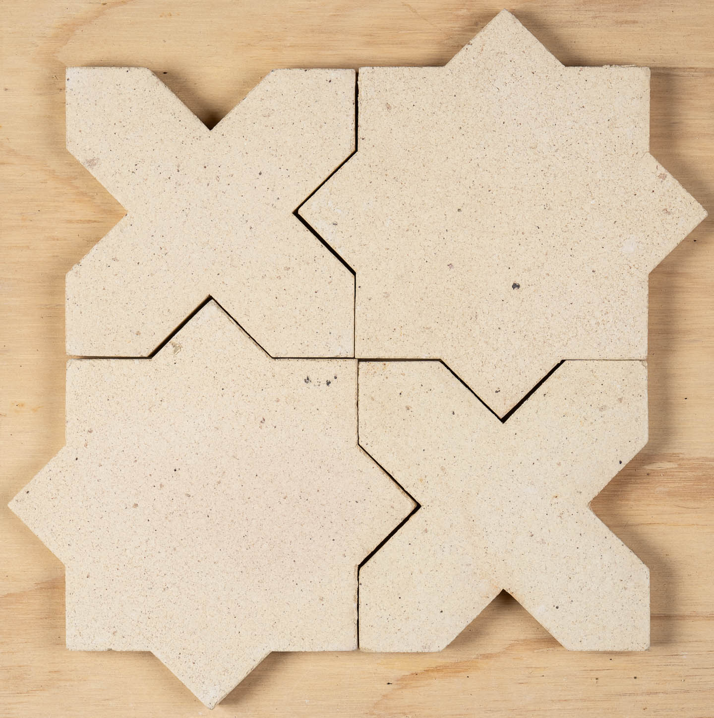 Light Sand Estrella. This beautiful handmade tile features a neutral light beige colouring with rustic flecks of light brown and charcoal to bring an earthy feel. This absolutely stunning design is made up of two tiles—stars and crosses to bring intrigue and uniqueness to any space while complementing other tiles or flooring and furnishings. These tiles will suit interiors and exteriors and can be used for walls and feature spaces. Our terracotta installation guide is provided for sealing tricks and tips.
