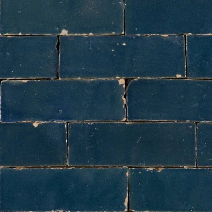 Navy Glazed Bricks Tile. Gorgeous, sophisticated navy brick shaped tiles to balance out any interior. Navy Glazed Bricks, simple and classic.