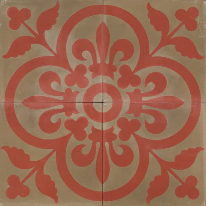 Olive Royal Tile. Colours of olive and rust give an earthy feel to this tile, with a floral-like pattern that cascades out. Olive Royal for any interior.