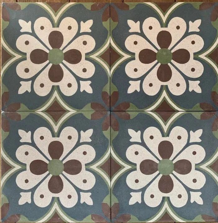 Petite Blue Magnolia Tile. Earthy tones complimented with a smokey blue and a white magnolia flower. Petite Blue Magnolia to beautify any interior.