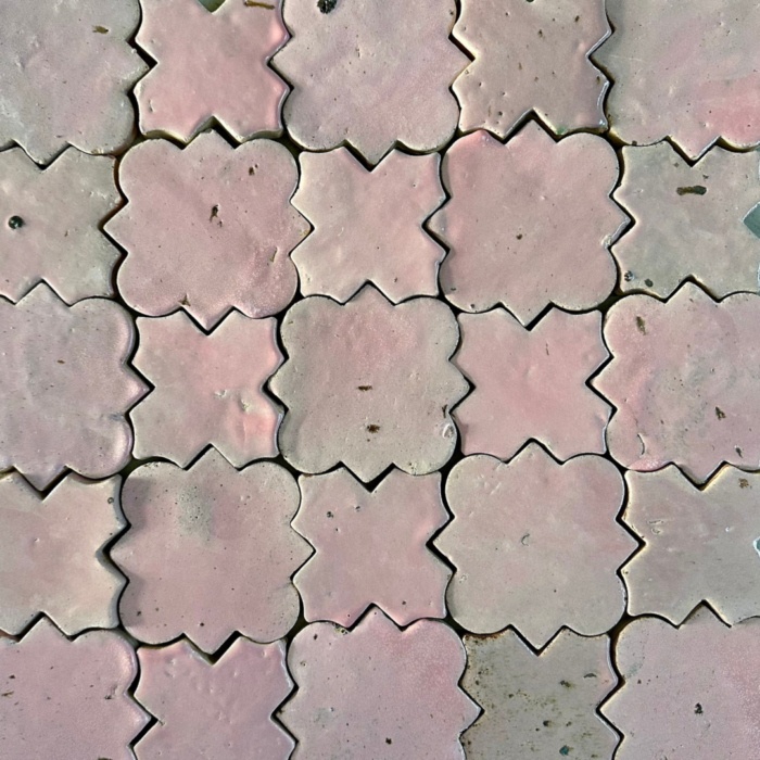Pink Blossom Tile. Sister of the ever so popular Glossy Estrella Tiles, the Pink Blossom has got a bit more of a Moroccan flare with its tessellating shapes. Glazed with a baby pink finish, this tile makes a perfect splash back or feature tile.