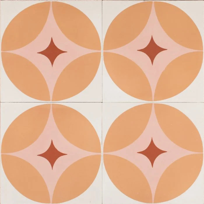 Pink Retro Star Tile. Let’s bring the fun back with this gorgeous new retro influenced design. The vibrant complimentary colours of pink, red and salmon give this retro star and circle design a memorable pop, making this tile unique with it’s appeal. Be wild. Be different. Be retro. Pink Retro Star bringing fun filled style to any interior.