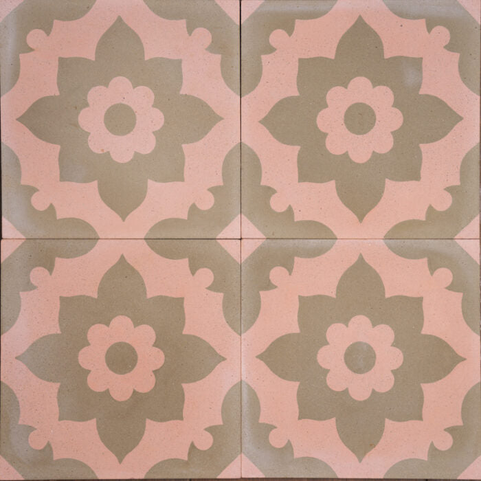 Where deep olive meets a delicate soft pink, beautifully connecting the old, with its antique effect, and the new. Pink Sol carries its vibrant power featuring a strong flower shape that centres the tile and cascades out, creating a stunning outcome wherever it is laid. Pink Pink Sol for any installation indoors or outdoors.