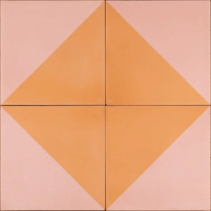 Rajasthani Sunrise Tile. Bring the stunning pink and orange colours of a beautiful Rajasthani sunrise to any space within your home. This dreamy but modern design will not disappoint. Combined, these striking colours with large diamond patterns will make a statement. This design has the added bonus of an alternative pattern � fun to play. Rajasthani Sunrise for any interior.