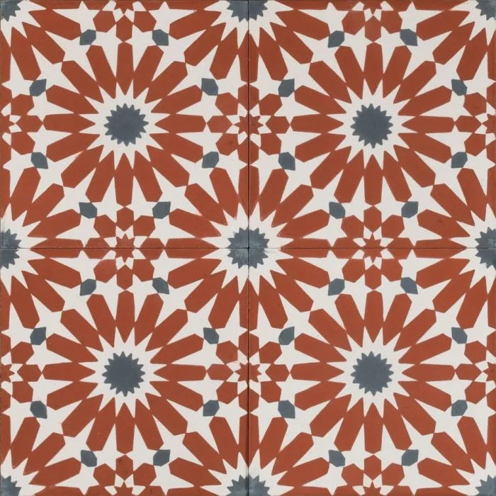Red Fez Tile. Beautiful, abstract, bold. Red, white and navy with powerful flower patterns that cascade out. Red Fez for any interior.