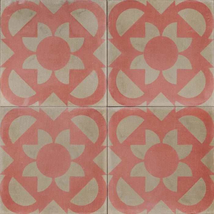Red Sunflower Tile. A dusty red colour balanced by olive brings life to the reproduction tile. Red Sunflower to compliment any interior.
