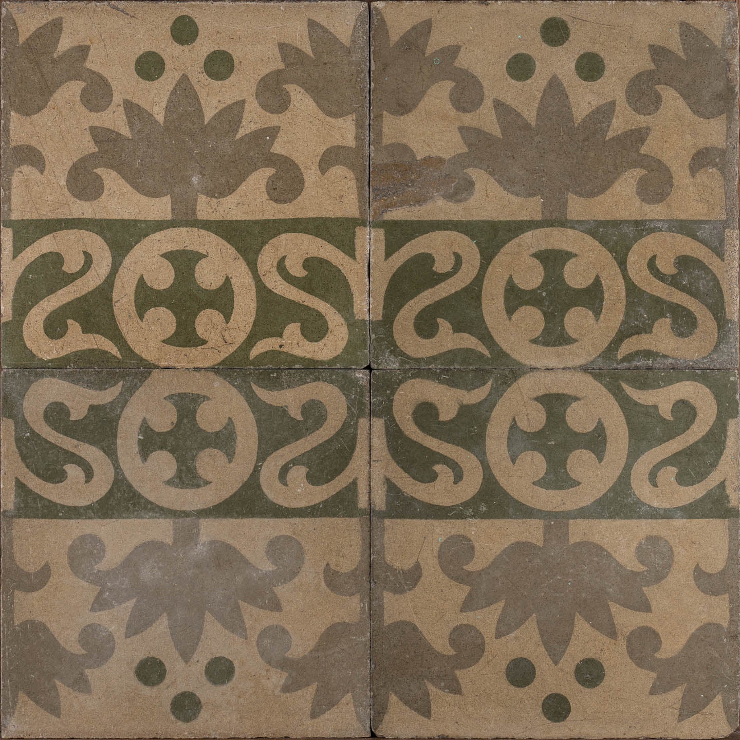 An intricate design in grey and white with a splash of green. Floral and royal aspects, salvaged from Barcelona and absolutely stunning and elegant.