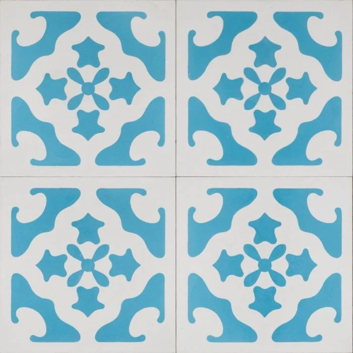 Santorini Tile. The colours of the Mediterranean bring the soft pattern in this tile to life. Sky blue and white, Blue Santorini for any interior.