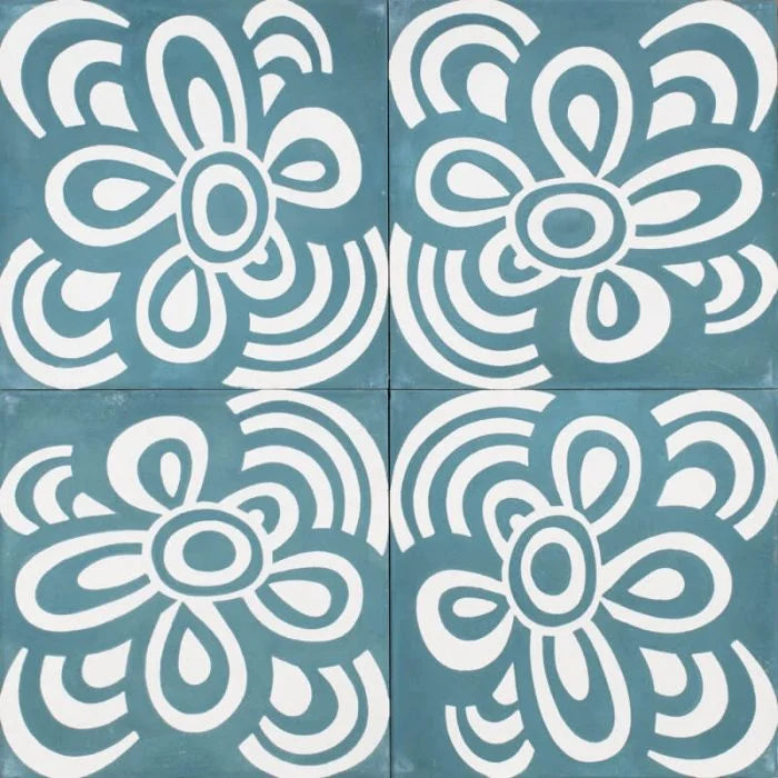 Teal Frangipani Tile. A deep teal coloured tile complimented by a thick white frangipani pattern that cascades out. The colour of teal for any interior.