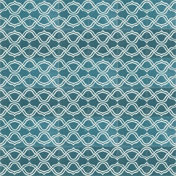 Teal Paris Tile. A deep smokey teal colour that balances out the wavy white pattern that fills the tile. Teal Paris to compliment any interior.