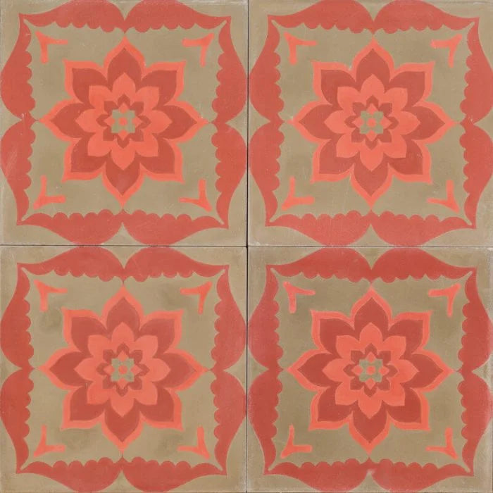 Urban Night Tile. A festive tile coloured by deep terracotta, orange and olive that inspire the flowers shapes in the centre. Urban Night for any interior.