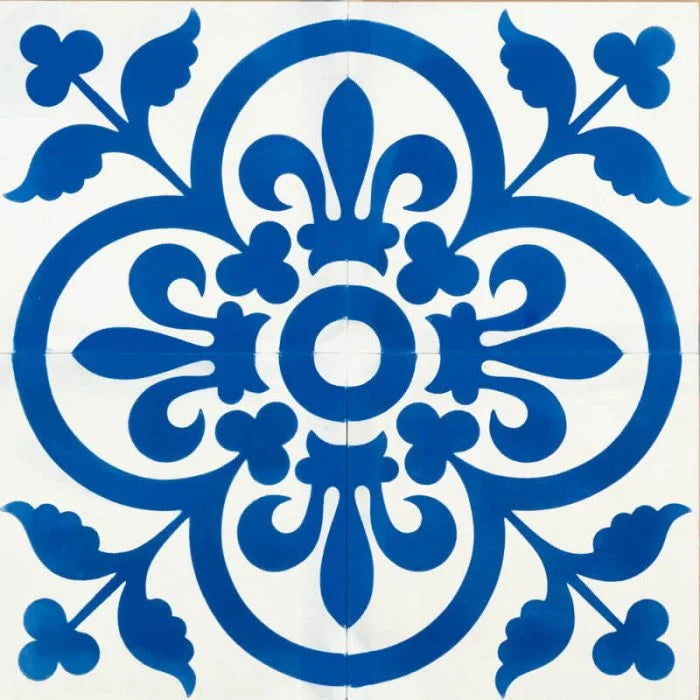 White Royal Tile. Bright and energetic, a white tile with a thick deep blue floral pattern that explodes from the centre. White Royal for any interior.