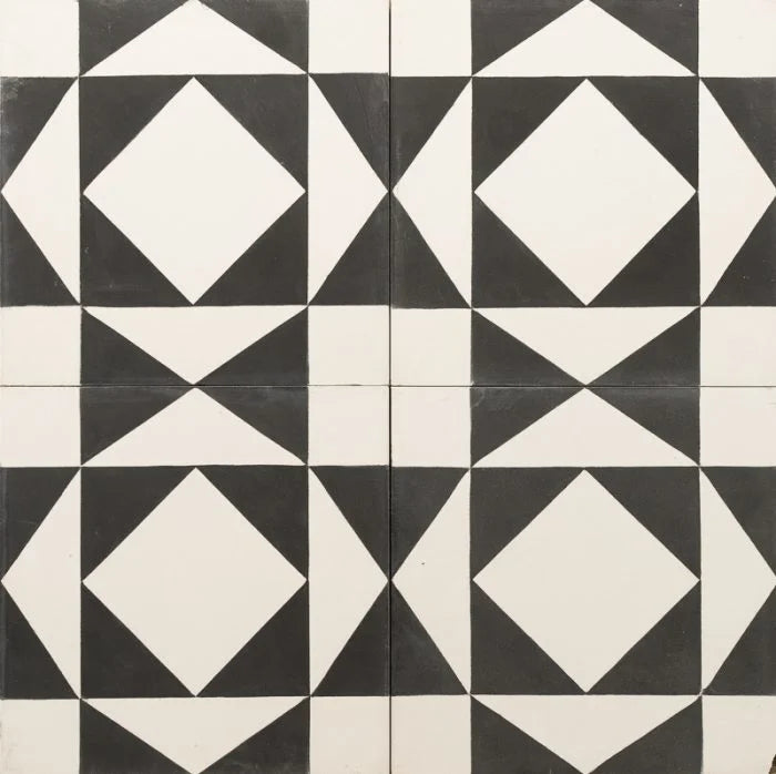 White Urban Retro Tile. A black and white vibrant tile with a graphic pattern made out of diamonds and shapes. White Urban Retro Tile to bring drama and depth to any interior.