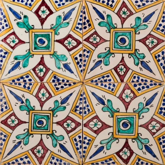 Zellige Lotus Tile. Let the bright beautiful colours of Morocco shine in any space with the Zellige Lotus tile. Intricately hand painted the vibrant colours come alive and bring only the Moroccan happiness. These tiles will make you dance! A tile to bring zing to any interior, the Zellige Lotus Tile.